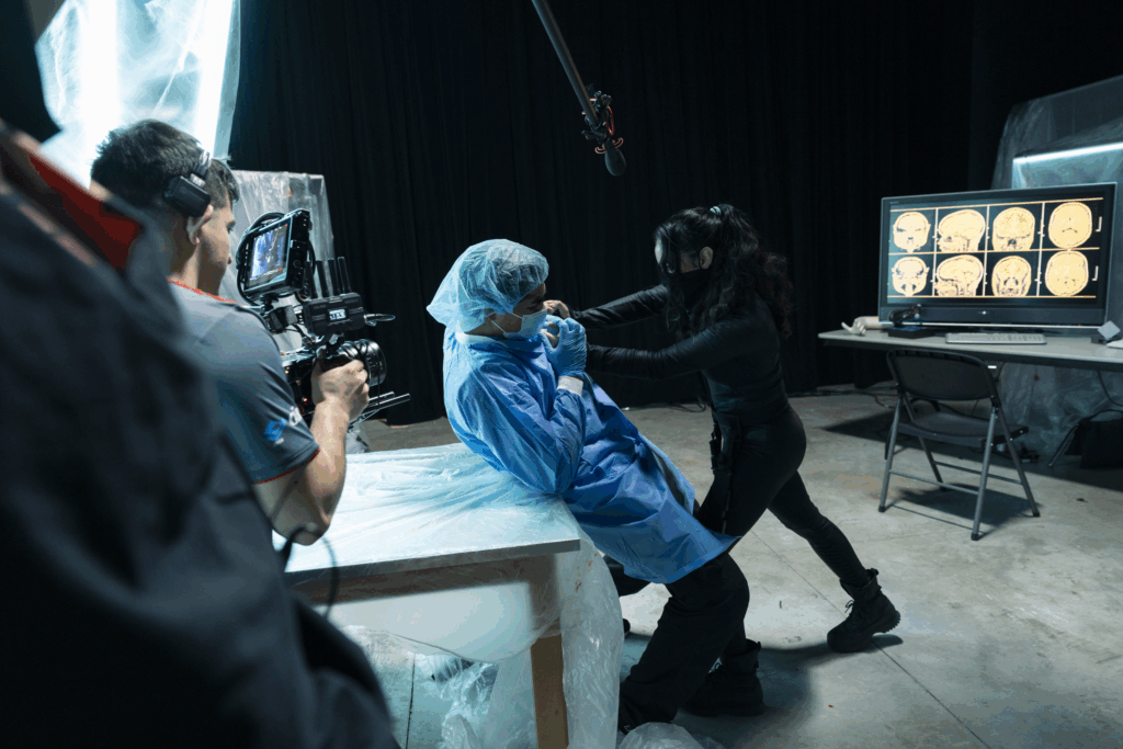 A hallmark of the production was its collaboration with industry stunt professionals. Stunt actors Jewelianna Ramos-Ortiz and Justin Ortiz, who also served as stunt coordinator, brought a level of action design rarely seen in student filmmaking. “Collaborating with industry stunt actors like Jewelianna Ramos-Ortiz and Justin Ortiz really elevated the film, allowing us to implement quality action design while still staying true to the story,” Perez added.